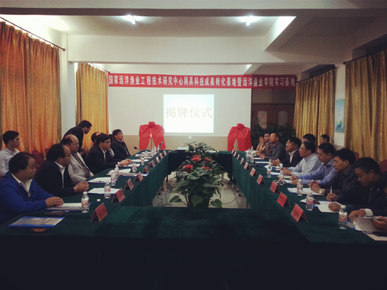 2014年10月26日,“国家远洋渔业工程技术研究中心网具科技成果转化基地暨远洋渔业学院实习基地”揭牌仪式在山东省荣成市威海好运通网具科技有限公司举行。副校长黄硕琳,科技处副处长王伟江,海洋科学学院、国家远洋渔业工程技术研究中心专家以及山东渔船协会会长刘克宽、石岛管理区副书记姜子恩、石岛管理区经济发展局局长韩萍等相关政府部门领导,大连海洋大学等高校领导,威海好运通网具科技有限公司董事长张孝先等出席揭牌仪式。