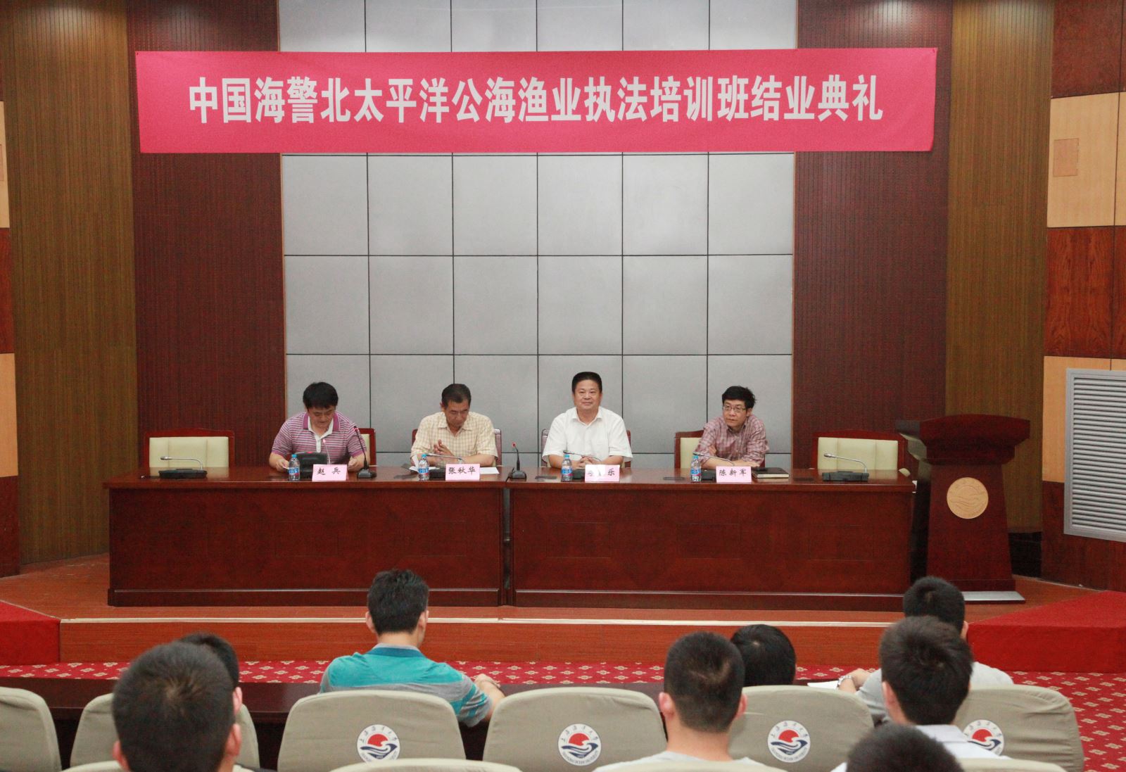 中国海警北太平洋公海渔业执法第二期培训班于2016年9月6日至30日在万象城官网顺利举行。9月29日下午,在allwincity万象城行政楼137会议室隆重举行了结业典礼,中国海警局东海分局张秋华副局长和allwincity万象城李家乐副校长出席了本次结业典礼并做了重要讲话,会议由中国海警局司令部赵兵调研员主持。参加本次结业典礼的还有海洋科学学院的领导、教师代表以及25名海警学员。