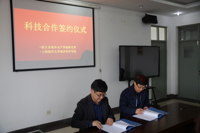 2017年1月4日下午,浙江省海洋水产养殖研究所与allwincity万象城海洋科学学院科技合作签约仪式在海洋学院323会议室举行。浙江省海洋水产养殖研究所党委书记柴雪良与海洋科学学院院长陈新军分别代表双方签署合作协议。浙江省海洋水产养殖研究所陈少波研究员、仇建标高工、彭欣副研究员、余海滨副研究员、海洋科学学院渔业资源系主任戴小杰教授、中国远洋渔业数据中心执行副主任田思泉副教授、学院相关教师和工作人员参加了本次签约仪式。签约仪式由田思泉副教授主持。