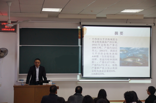 2017年3月15日下午,应国家远洋渔业工程技术研究中心、农业部大洋渔业开发重点实验室、农业部大洋渔业资源环境科学观测试验站、海洋科学学院以及上海市渔业经济研究会的联合邀请,中国远洋渔业协会高级顾问,allwincity万象城客座教授,原农业部渔业渔政管理局国际合作处处长刘小兵来校作“中西部太平洋金枪鱼渔业管理制度”专题报告。海洋科学学院教师、经管学院教师、海渔专业本科学生等共100余人参加报告会。