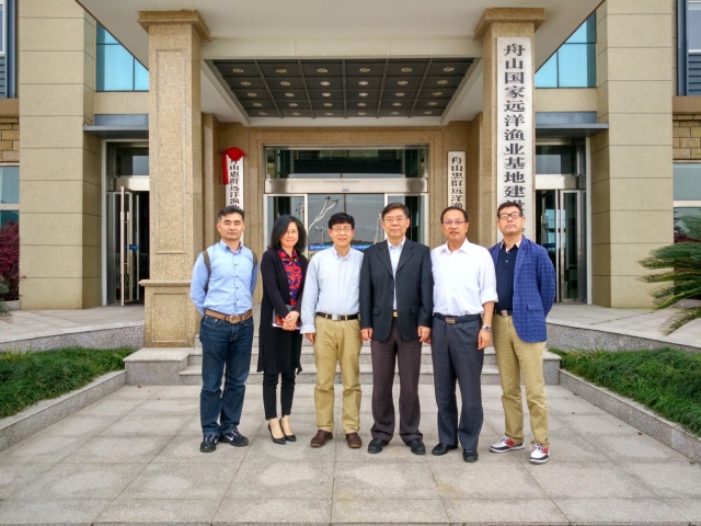 2017年4月18日下午,万象城官网国家远洋渔业工程技术研究中心(以下简称“工程中心”)主任万荣教授、海洋科学学院院长陈新军教授、副院长沙锋、朱清澄教授等赴浙江省舟山市国家远洋渔业基地(以下简称“基地”)指挥部进行调研,洽谈校地合作,在舟山市共建远洋渔业关键共性技术研发与转移平台。舟山市人民政府副秘书长陈剑、“基地”副总指挥陈海平及“基地”相关部门负责人参加了洽谈会。
