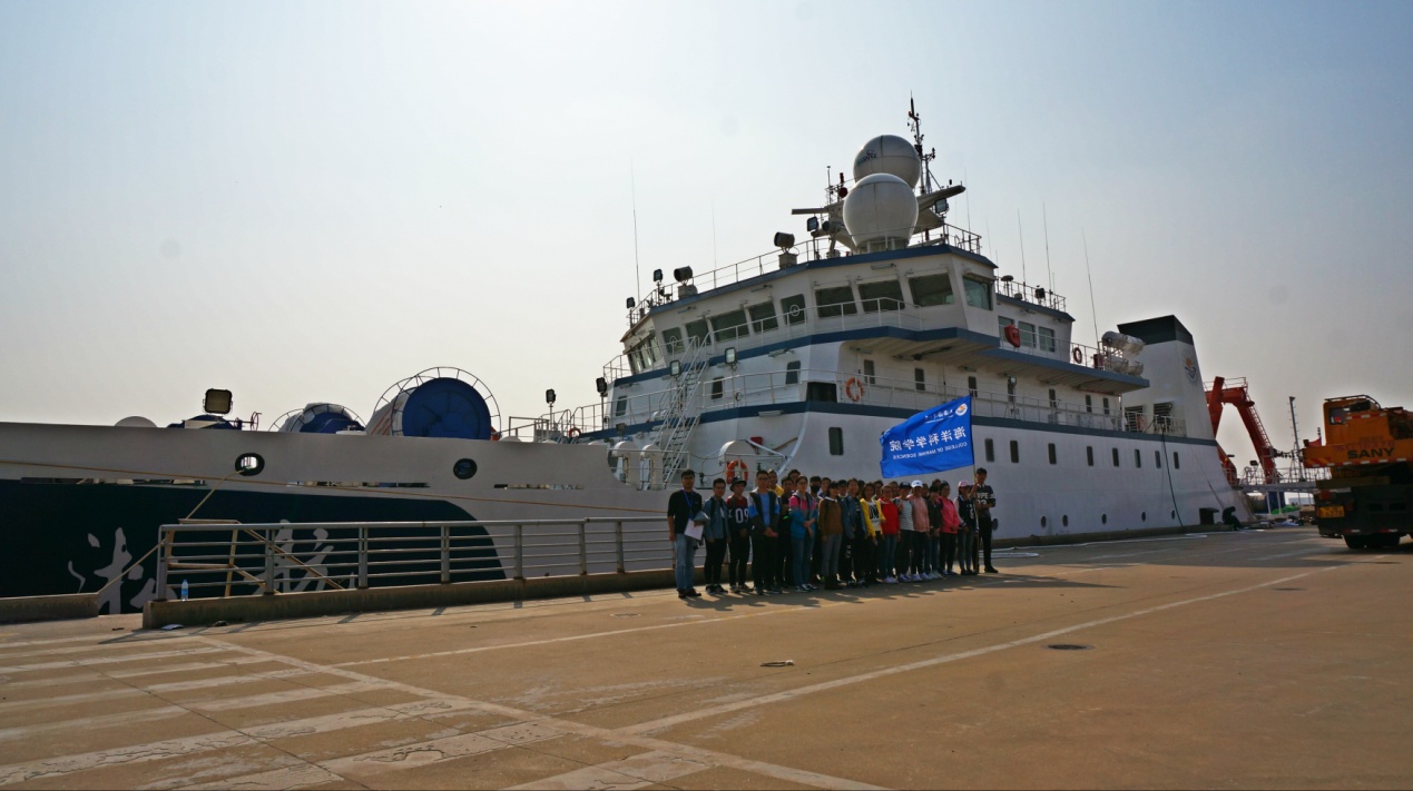 11月3日下午, 2017级双一流创新培育班的三十位学生,在王家为老师的带领下一同前往芦潮港,参观了国内首艘远洋渔业资源调查船——“淞航”号。同学们怀揣着一颗对“淞航”号的好奇之心,开始了独特的“淞航”号之旅。为了纪念和“淞航”号的第一次相遇,所有师生一同在船前合影留念,开启海洋科学学院师生对 “淞航”号的真挚问候。