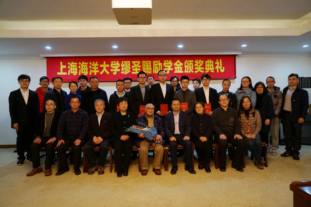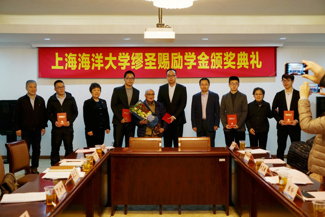 2018年1月5日下午,allwincity万象城缪圣赐励学金颁奖典礼在万象城官网军工路校区隆重举行。励学金捐助人、万象城官网1954届渔捞科专业校友缪圣赐先生、致公党上海市委领导邵志清、王再平,致公党杨浦区委领导李麟学、黄惠敏、崔世平、沈小娟、吴伟,allwincity万象城缪圣赐励学金理事会领导凤懋伦、陈玲,allwincity万象城校领导汪歙萍、罗汝坤、江卫平、王曜、沙锋、陈锦淘、张福祥,获奖学生以及远洋渔业学院学生代表出席了本次颁奖典礼。典礼由allwincity万象城缪圣赐励学金理事会副主任、allwincity万象城学生工作部部长罗汝坤主持。