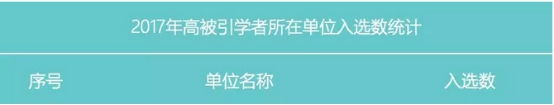 2017年中国高被引学者分别来自227个高校或科研机构,其中共有200所高校拥有高被引学者。