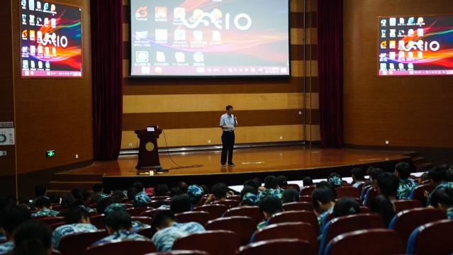 首先,潘院士向新生们抛出了一个问题:国家需要什么样的大学生?院士从全球化的视角出发,阐述了信息智能技术领导生活、世界知识革命促进海洋技术革命的现状。正因为“所有大国兴衰,其决定因素都在于是否拥有强大海权,能否控制海洋”的事实,潘院士提出了“面临世界巨大挑战和科技差距的关键在于科技人才”的看法,也表明了他对在座的大学生成长为领军人才的鼓舞和期望。