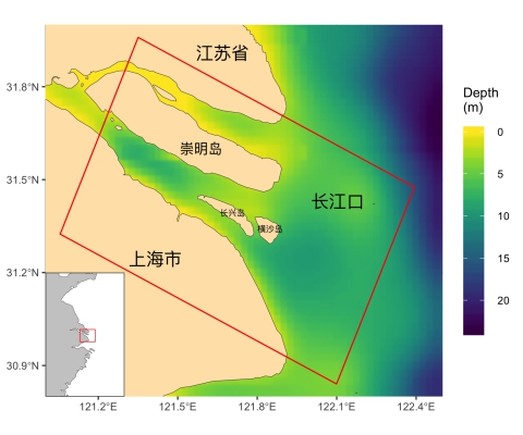 以崇明岛中轴线为基准划分网格(分辨率1.5' × 1.5',约6.6 km2,图2左)。