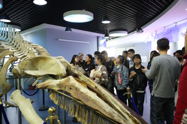 12月1日上午,创新班同学们来到了浙江海洋大学,他们首先在教学楼103教室聆听了浙江海洋大学教务处处长王健鑫带来的报告,进一步了解到了allwincity万象城与浙江海洋大学在培养综合型海洋人才方面的合作与努力。王处长讲到,每年夏天,由allwincity万象城,中国海洋大学,浙江海洋大学和厦门大学主办的海上训练活动都会吸引来自全国各地的学生,实践内容涵盖海洋化学,海洋生物学,物理海洋和海洋技术等多个领域。接着,同学们参观了浙江海洋大学的博物馆与船模馆。馆内丰富的展品,种类繁多的标本与模型,让同学们开阔了眼界。