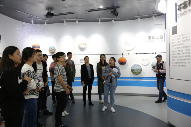 最后,同学们来到了远洋渔业小镇。在小镇展示厅中,墙壁上镌刻着舟山发展的历史,讲述了舟山群岛从一无所有到渔业领头羊的故事。目前,舟山全市的渔船数量占全国的20%,作业范围遍布三大洋。而以远洋渔业为主题而开发的特色小镇,也充分体现出了舟山所具有的独特魅力。