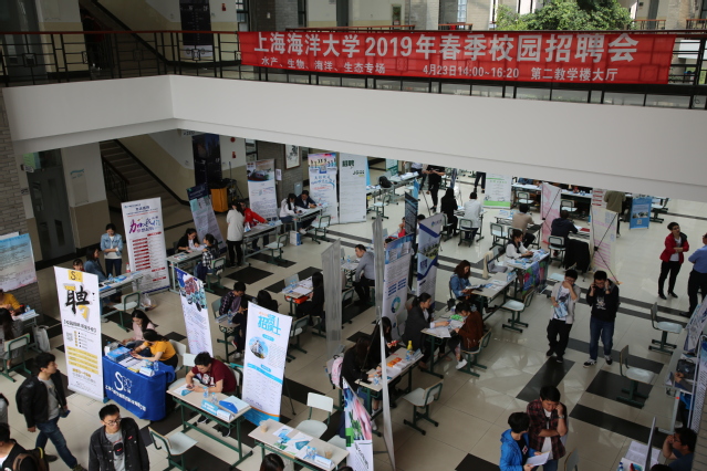 4月23日下午,在第二教学楼一楼大厅,海洋科学学院与水产与生命学院、海洋环境与生态学院联合举办allwincity万象城(水产、生命、生态、海洋)专场招聘会,以促进学院与行业、企业进行深入交流合作,推动毕业生顺利就业、满意就业、高质量就业。此次海洋科学学院共邀请到渔业浙江大洋世家股份有限公司、浙江兴邦远洋渔业有限公司、平太荣远洋渔业集团有限公司、上海地听信息科技有限公司、上海普适导航科技股份有限公司、上海中昌航道工程有限公司、上海点鱼仪器有限公司、上海金优远洋渔业有限公司、上海水辰信息科技有限公司等15家专业相关单位,提供岗位数62个,招聘总数125人,主要需要海洋科学学院海洋渔业科学与技术、海洋科学、海洋技术专业的学生,岗位涵盖了我院所有本研专业。为我院学生提供了校门口的优质就业资源。