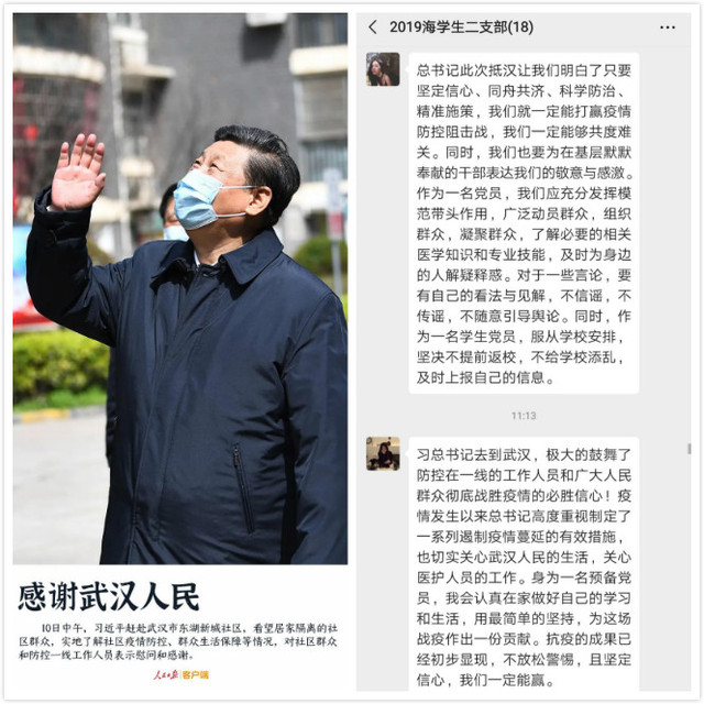 习总书记的这次考察,不仅是湖北和武汉疫情防控工作的支持、肯定和鼓励,更温暖着每一位人民群众的心。我院广大学子也倍感鼓舞和振奋,纷纷对此次总书记武汉之行进行热评热议。