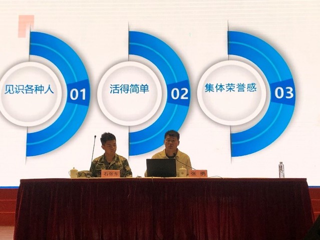 最后,退伍学生代表吴越洋、雒金洲依次分享了自己的军旅生活。“当兵后悔三年,不当兵后悔一辈子”是他们军旅生活后的切身感受,在自律、自强、自立、自省方面得益于队部的历练,更体会到保家卫国的责任和担当。