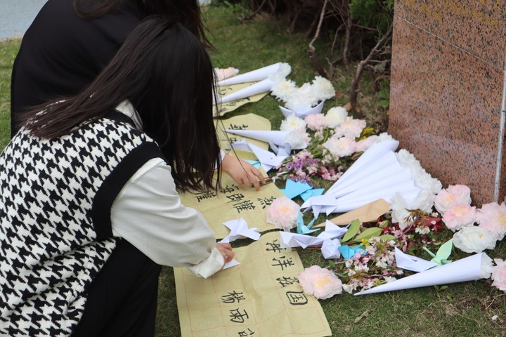 随后,大家依次上前献花,并献上学院师生手工折成的船只、鱼类和四幅学生书法作品,借此向侯老表达深深的敬意。上海市劳模戴小杰带领师生们深情回顾侯老先生为人、为师、为学的光辉事迹和高尚品质。